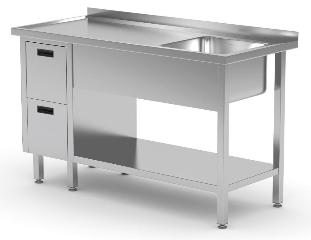 Stół ze zlewem, półką i szafką z dwiema szufladami - komora po prawej stronie | 1400x700 mm