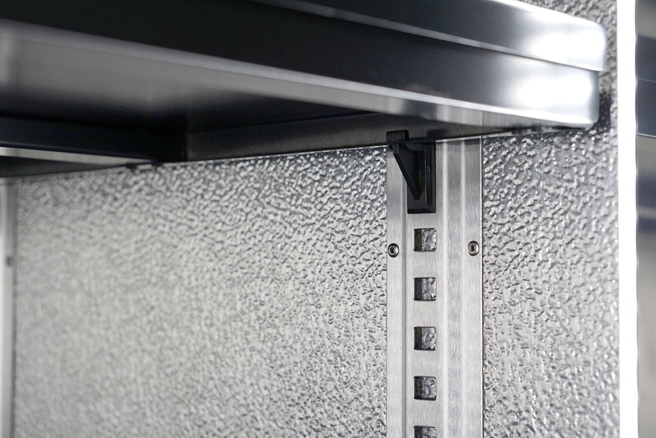 W szafie SCh-SR …/WH/BP zrezygnowaliśmy z przegrody wewnętrznej, dając Ci więcej przestrzeni do wygodnego ułożenia asortymentu.