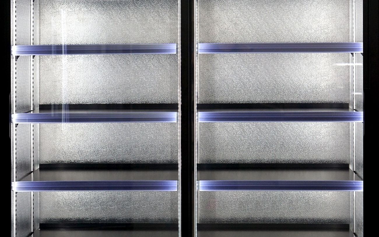 Drzwi przesuwne zamontowane w urządzeniu wykonane są z wytrzymałego szkła hartowanego, co zapewnia bezpieczeństwo użytkowania. Dzięki nim bez problemu ustawisz szafę nawet w mniejszym lokalu, zachowując komfortowy dla klientów dostęp do produktów.