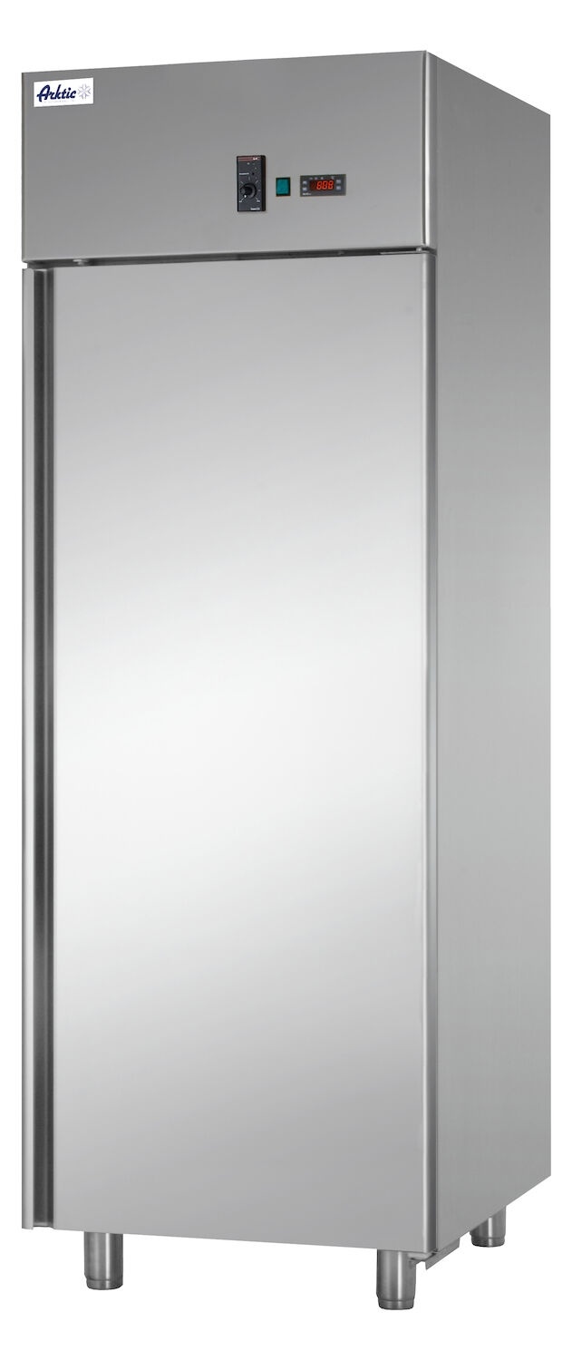 Szafa chłodnicza jednodrzwiowa cukiernicza firmy Arktic została zaprojektowana tak, by pomieścić standardowe tace cukiernicze o wymiarach 600×400 mm z obciążeniem do 15 kg każda. Urządzenie pracuje efektywnie dzięki doskonałym parametrom technicznym. Obudowa wykonana ze stali nierdzewnej AISI 304. 10 prowadnic ze stali nierdzewnej na półki/tace cukiernicze o wymiarach 600×400 mm. 30 poziomów na umieszczenie prowadnic. Izolacja poliuretanowa o grubości 60 mm. Samozamykające się drzwi. Możliwość zmiany kierunku otwierania drzwi. Wyposażona w cyfrowy termostat z wyświetlaczem. Chłodzenie statyczne wspomagane wentylatorem z regulacją prędkości. Zakres temperatur: od -2°C do 8°C. Maks. obciążenie prowadnic: 15 kg każda para. Czynnik chłodniczy: R455a.Podmiot odpowiedzialny (GPSR):