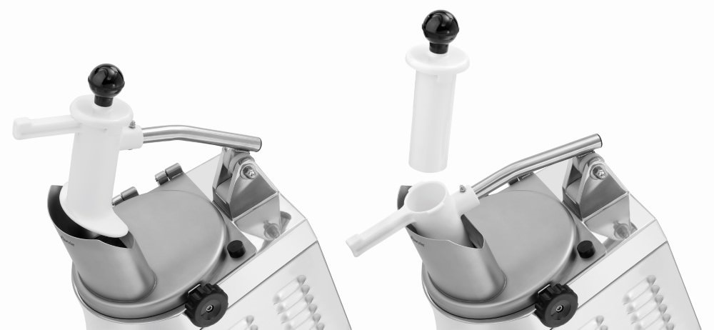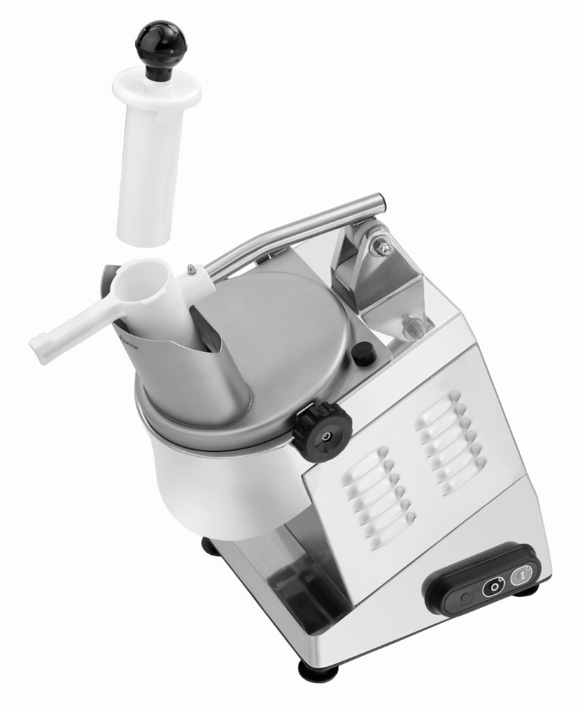 Wysoce wydajna szatkownica do warzyw z wyjątkowo dużym otworem do napełniania, przeznaczona do szatkowania warzyw, owoców lub sera.
