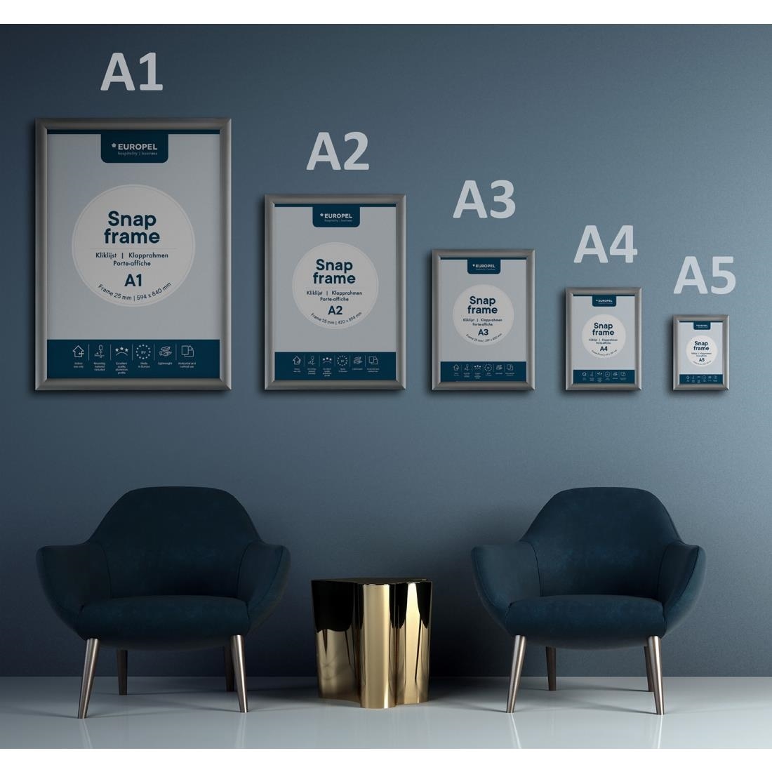 Ta elegancka ramka klikowa może być używana do plakatów, zdjęć, obrazów, dokumentów, certyfikatów, promocji lub materiałów marketingowych. Zmiana plakatów w tej ramce jest bardzo prosta. Wystarczy otworzyć 4 ramki z sprężynami, usunąć ochronną folię bez odblasków, umieścić obraz, plakat lub dzieło sztuki, zamknąć ramki i ponownie zawiesić ramkę. Folia ochronna chroni plakaty przed brudem, kurzem, wilgocią i odciskami palców. Dodatkowo folia ramki klikowej jest bezodblaskowa, co maksymalizuje estetykę wyświetlanych obrazów. Wykonana z wysokiej jakości aluminium, ta ramka na plakat jest zaprojektowana tak, aby służyła przez wiele lat. Konstrukcja aluminiowa sprawia, że ramka graficzna jest trwała, ale wystarczająco lekka, aby łatwo ją przenosić. Montaż tej ramki na ścianie jest równie prosty jak 1, 2, 3. Zestaw montażowy jest również dołączony do zakupu, więc wystarczy wiercić otwory, włożyć śruby i zamontować ramkę. Tak prosto!