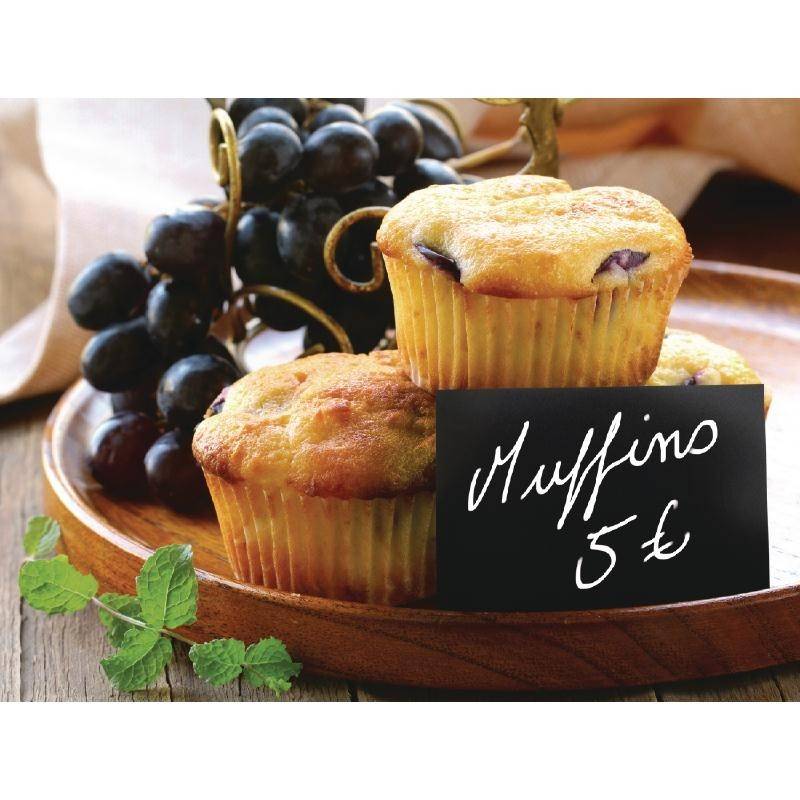 Tabliczki, które mogą posłużyć do oznaczenia miejsc na weselu czy zapisania cen produktów w bufecie. W zestawie załączono biały pisak kredowy. Zestaw zwiera 20 tabliczek.