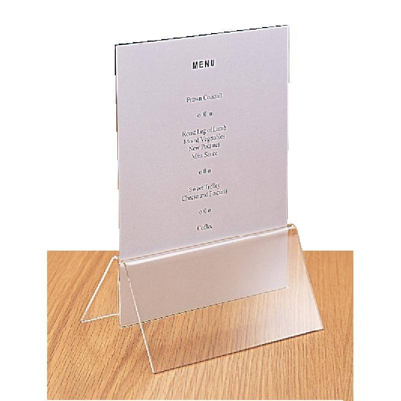 Przezroczysty uchwyt wykonany z akrylu. Jest bardzo wytrzymały i dostosowany do dwustronnych kart menu.
