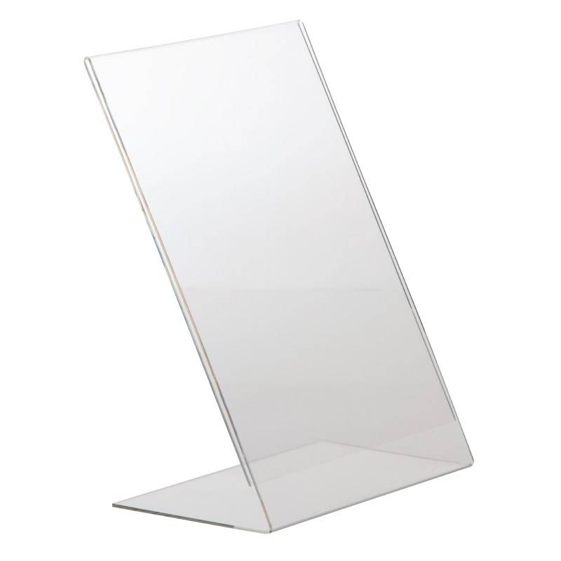 Uchwyt z pleksiglasu do prezentowania menu lub innych informacji. Papier można wsunąć z boku. Rozmiar A4.