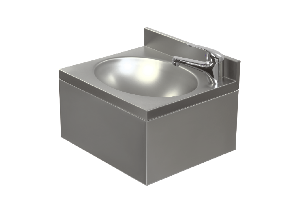 Umywalka ze stali nierdzewnej, jednokomorowa, obudowana, z zamontowaną baterią umywalkową stojącą, jednouchwytową, z tradycyjnym uchwytem. Bateria posiada mieszacz ceramiczny. Wymiary umywalki (dł x szer x wys) 400 x 350 x 220 mm. Głębokość komory 120 mm. Grubość blachy 1,0 mm. W komplecie zestaw mocujący do ściany oraz syfon.