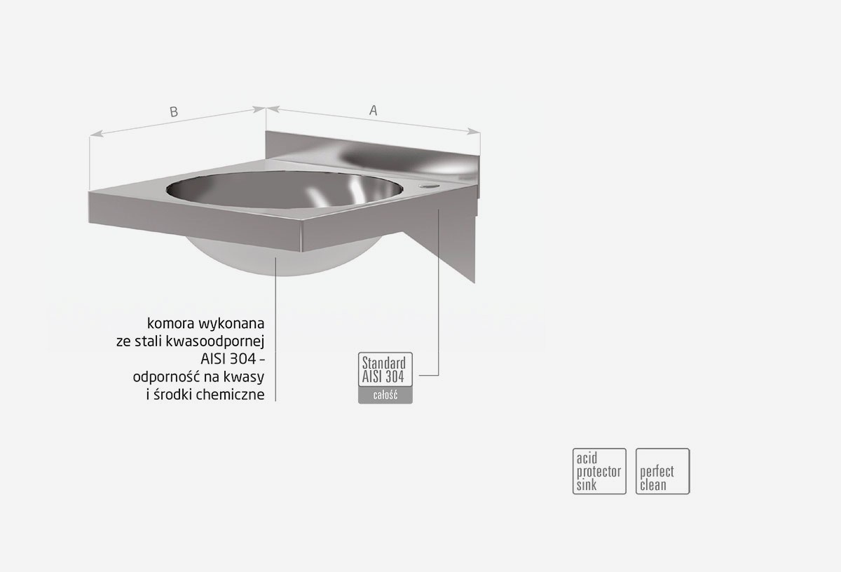 - zlew wykonany w całości ze stali nierdzewnej kwasoodpornej AISI 304 o wysokiej odporności na kwasy i środki chemiczne (Standard AISI 304),