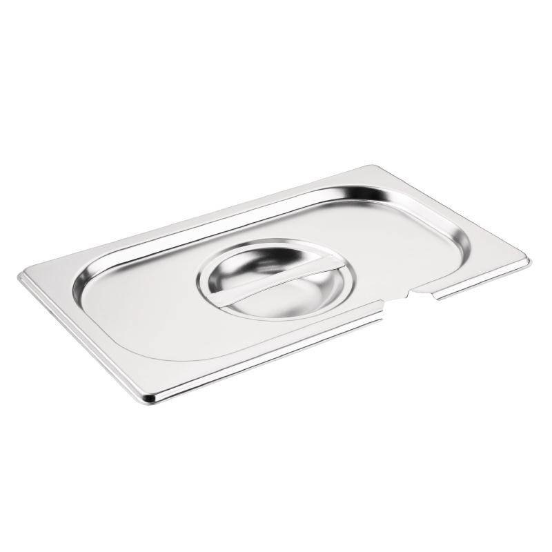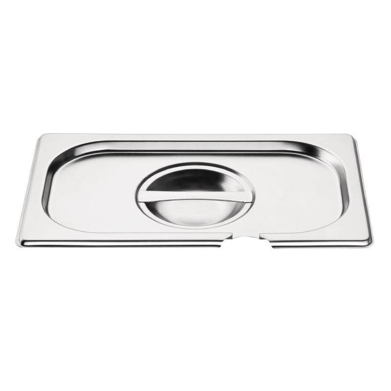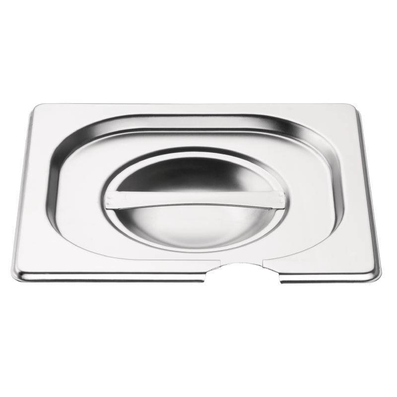 Pokrywa specjalnie zaprojektowane do pojemników GN 1/9 od firmy Vogue. Wykonana została z wysokiej jakości stali nierdzewnej i zapewnia długą trwałość i wytrzymałość. Wycięcie pozwala na trzymanie łyżki wewnątrz, przy jednoczesnym zakryciu pojemnika i utrzymywaniu ciepła.