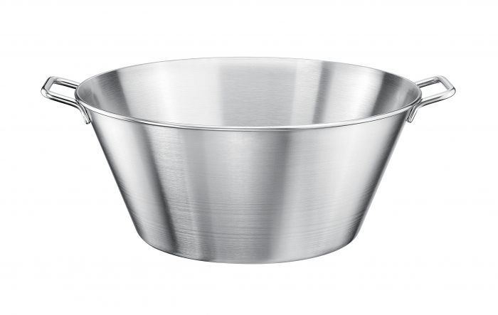 - gruba stal nierdzewna 18/10, satynowana- zaokrąglony rant