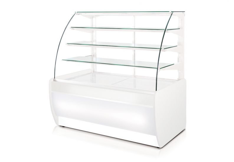Witryna chłodnicza prostokątna od 4 do 10 °C, szyba gięta, 1390x890x(h)1460 mm