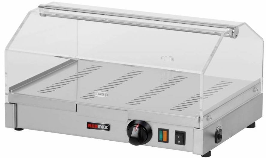 Nablatowa witryna grzewcza 0,40 kW, od 30 do 60 °C, z szybą giętą, srebrna