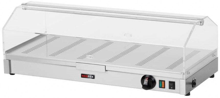 Nablatowa witryna grzewcza 0,70 kW, od 30 do 60 °C, z szybą giętą, srebrna