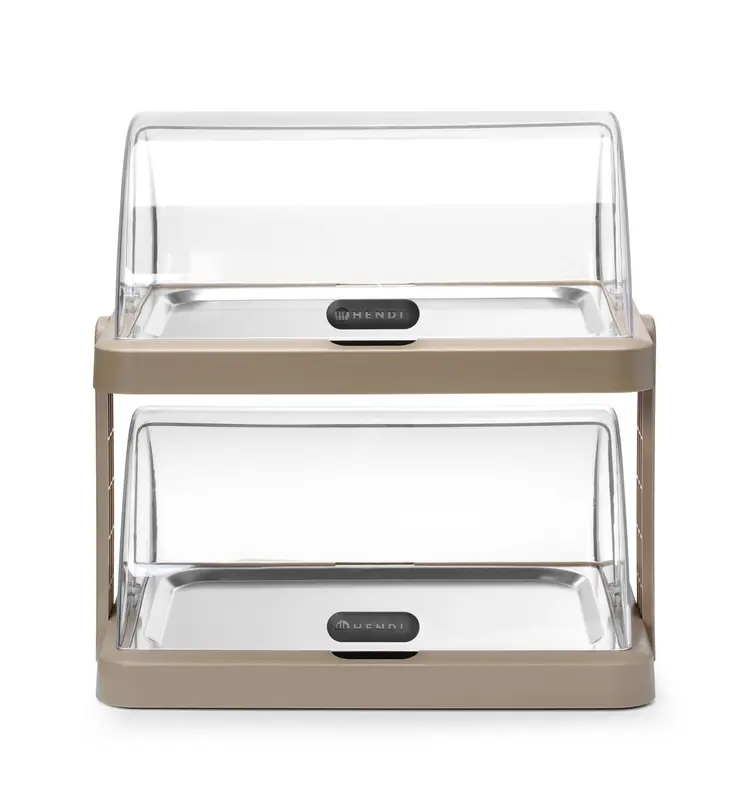 Witrynka bufetowa dwupoziomowa 355x480x(h)480 mm, z pokrywą roll-top, prostokątna, Hendi 871959