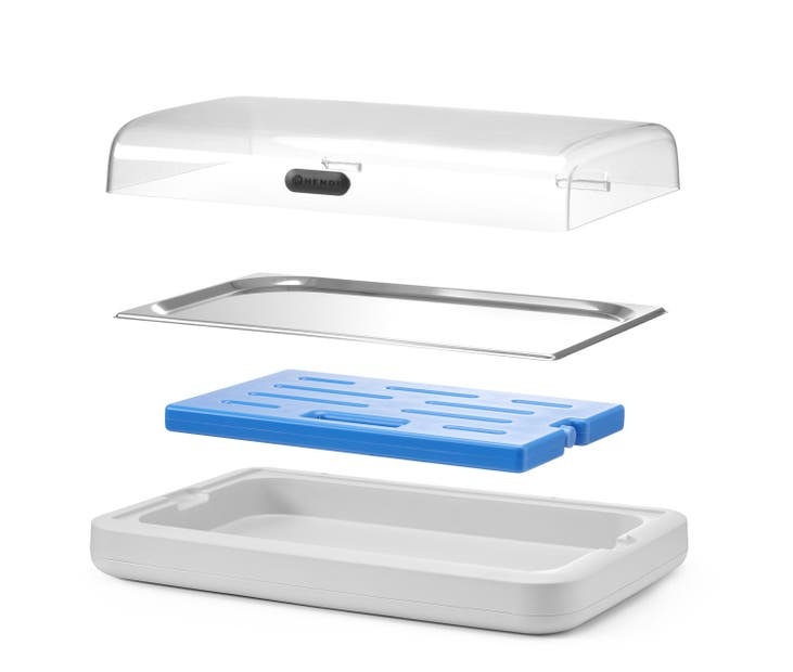 - W zestawie: stalowa taca GN 1/1 i element chłodzący z żelem
