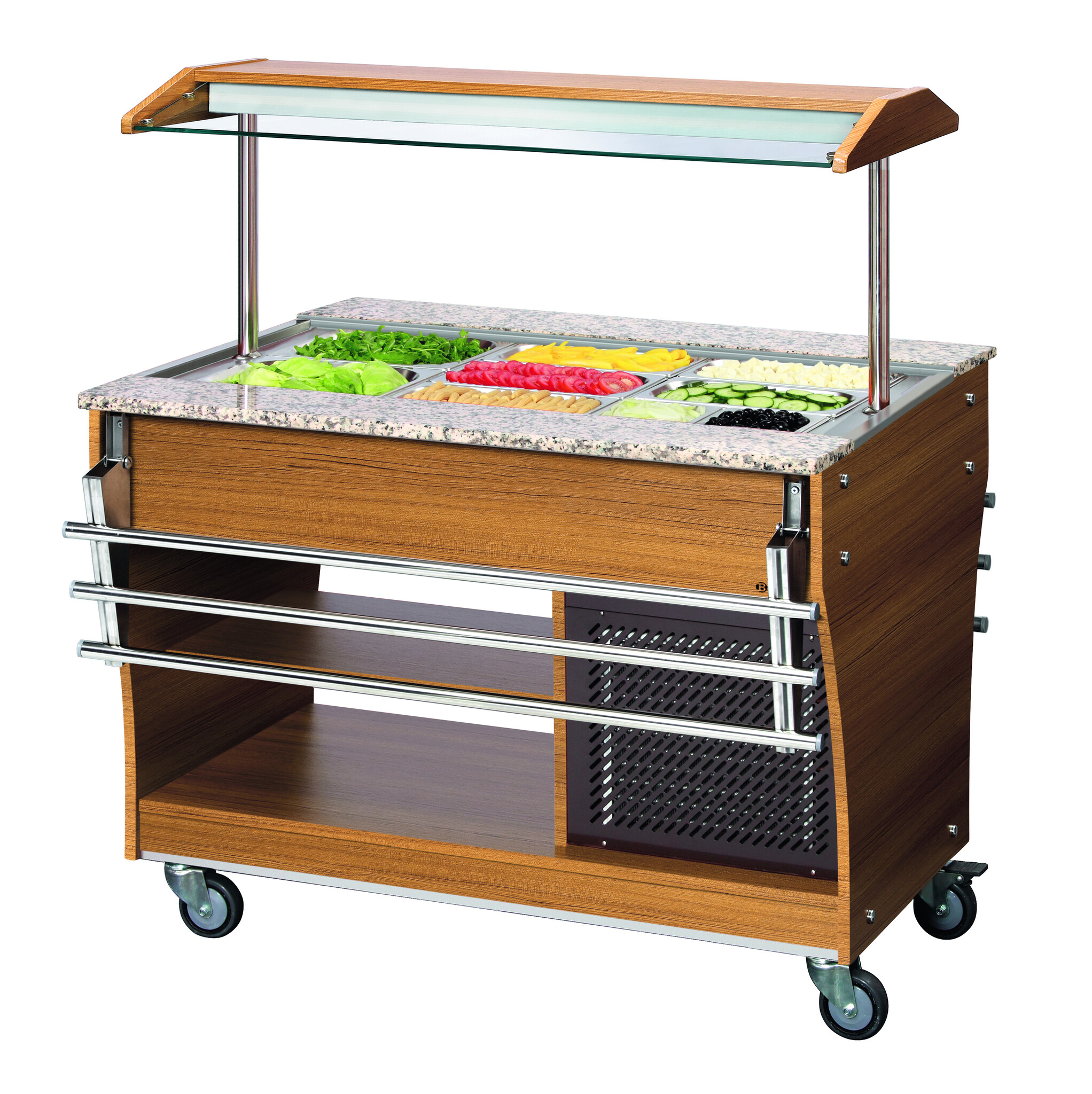 Perfekcyjna prezentacja „zimnych potraw”.Wózek bufetowy posiada zintegrowane oświetlenie, osłonę higieniczną z funkcją półki oraz kółka umożliwiające wygodny transport. Jednym słowem: idealne wyposażenie.Podmiot odpowiedzialny (GPSR):