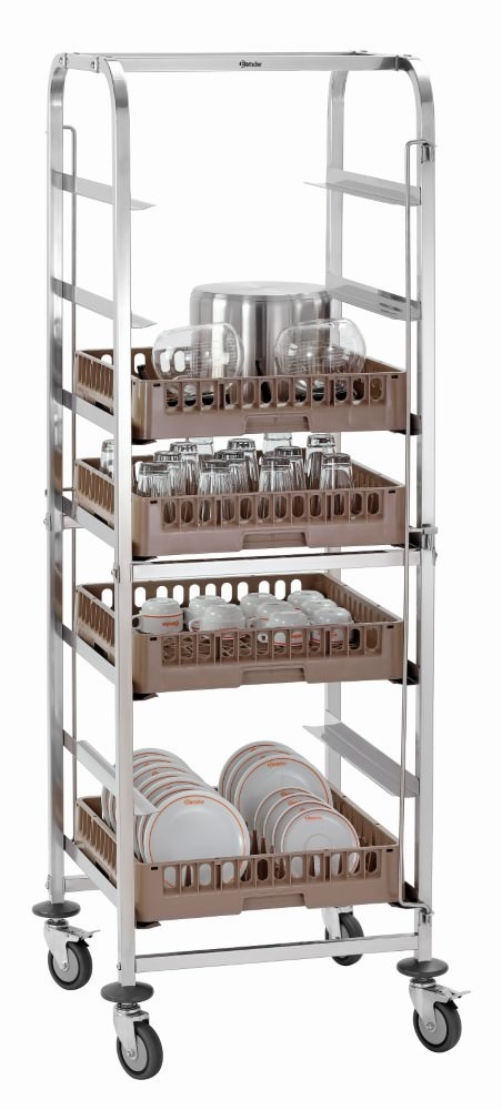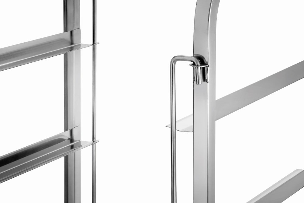 Wózek na kosze do zmywarek – dzięki 7 parom prowadnic i możliwości obustronnego załadunku – oferuje dużo miejsca do składowania na niewielkiej przestrzeni, gdy zamierzamy przechować lub opróżnić kosze. Specjalna blokada zapobiega przesuwaniu, przewróceniu lub wypadnięciu koszy do zmywarek.