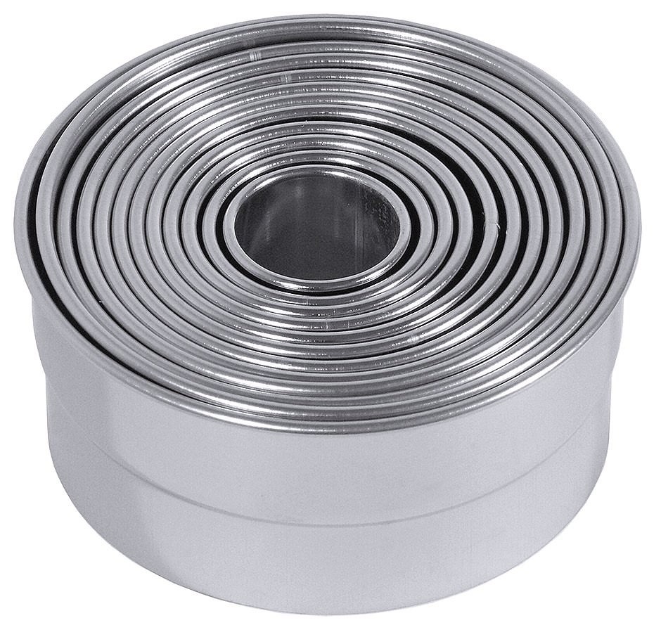 Wycinarki nierdzewne do ciasta 12 sztuk, koło o średnicy 25-105 mm