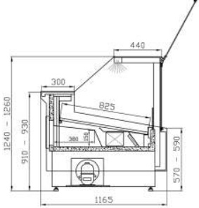 Lada chłodnicza, szyba prosta, z agregatem, obieg wymuszony