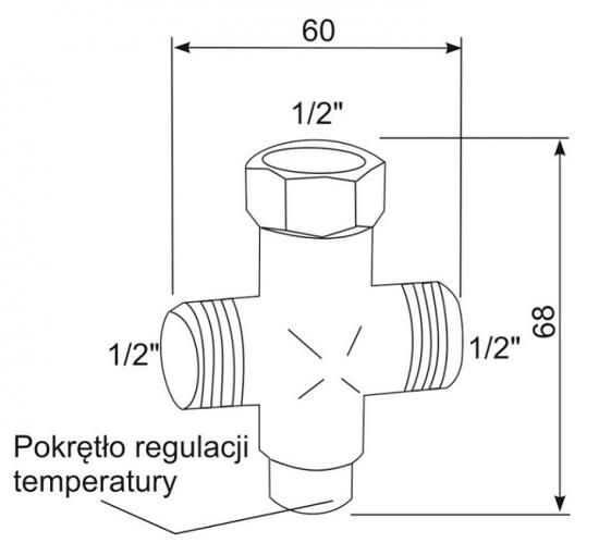 Ręczny, mechaniczny mieszacz ciepłej wody użytkowej. Regulacja temperatury wody zmieszanej pokrętłem – dobór takich wielkości przepływów wody zimnej i gorącej, aby na wylocie uzyskać wodę zmieszaną o żądanej temperaturze. Mieszacz wyposażony w zawory zwrotne. Przyłącza 1/2″. Mieszacz przeznaczony do obsługi jednego urządzenia.