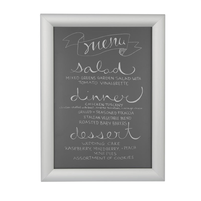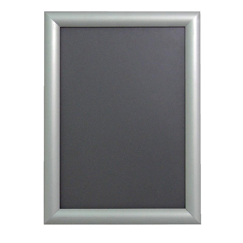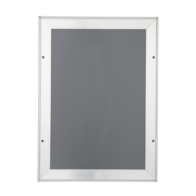 Ramka, która łatwo się otwiera, aby wymienić zawartość. Wykonano ją z antyodblaskowego PCW i matowego aluminium. Zestaw nie zawiera mocowania ściennego.
