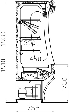 Regał chłodniczy z półkami metalowymi, agregat wewnętrzny