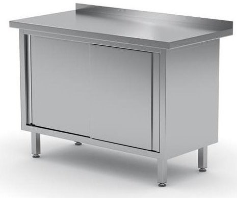Stół przyścienny z szafką z drzwiami suwanymi - spawany, o wym. 1200x600x(H)850 mm
