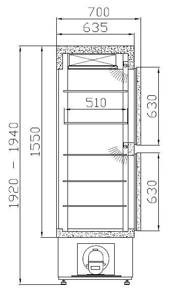 Witryna chłodnicza kwadratowa, 450 L, od 2°C do 10°C, stacjonarna