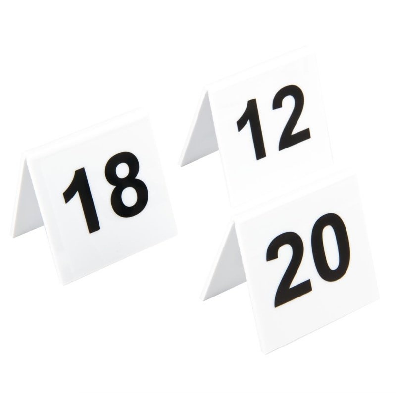 Proste tabliczki z numerami, które w łatwy i tani sposób pozwolą oznaczyć stoliki. Tabliczki są wytrzymałe, trwałe i łatwe w czyszczeniu. Zestaw zawiera 10 sztuk.