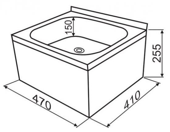 Umywalka ze stali nierdzewnej, jednokomorowa, obudowana o wymiarach: (dł x szer x wys) 470 x 410 x 255 mm. Głębokość komory 150 mm. Grubość blachy: 1,0 mm. W komplecie zestaw mocujący do ściany oraz syfon. Możliwość dostawy z otworem pod baterię w prawym lub lewym narożniku umywalki.