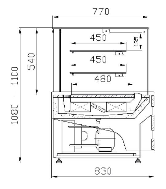 Witryna cukiernicza prostokątna, 350 L, od 5°C do 15°C, stacjonarna z agregatem
