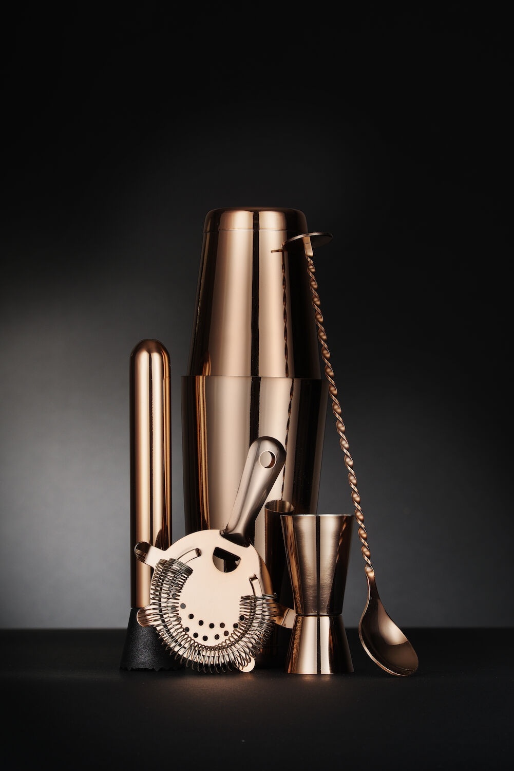- Kompletny zestaw niezbędnych narzędzi barmańskich