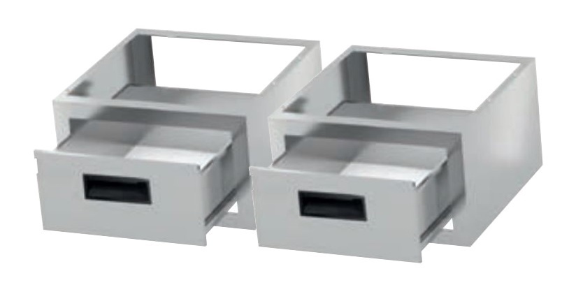 Zestaw dwóch szuflad podwieszanych ze stali nierdzewnej o wymiarach 400x600x(h)260 mm