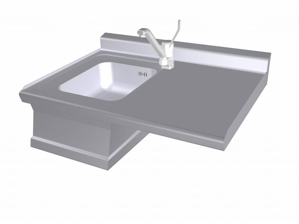 Zlew 1000x600x(h)280 mm z baterią i blatem po lewej stronie