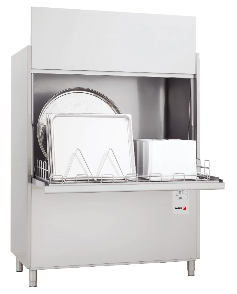 Rozmiar kosza: 1320x700 mm, wysokość komory 850mm, Elektroniczny system TERMOSTOP, elektroniczny panel sterowania, Ramiona myjące. Możliwość regulacji temperatury wody mycia i płukania. Możliwość dopasowania długości cyklu mycia: 2’ ÷ 12’. Cykl samomyjący. Teoretyczna wydajność zmywarki: 30 koszy/godzinę. Wbudowana pompa płukania. Pompa podnosząca ciśnienie wody, Zmywarka wykonana z podwójnej z blachy nierdzewnej 18/10 (AISI 304) Zasilanie: 400 V - III+N+E - 50 Hz. DD: Dozowniki detergentów . B: W zestawie pompa spustowa.Podmiot odpowiedzialny (GPSR):