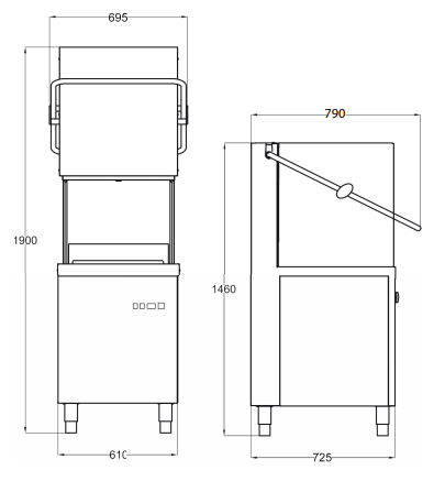 - Wymiary zewnętrzne: 610x725x1460/1900mm