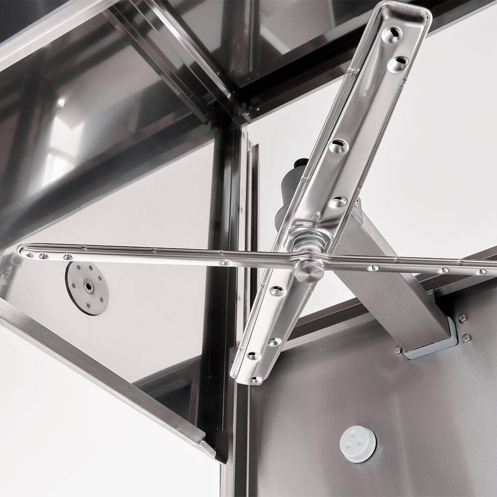 Zmywarka kapturowa 500x500 mm, do 30 koszy/h, 400V, z dozownikiem płynu myjącego, dozownikiem nabłyszczacza, pompą spustową i pompą wspomagająca płukanie