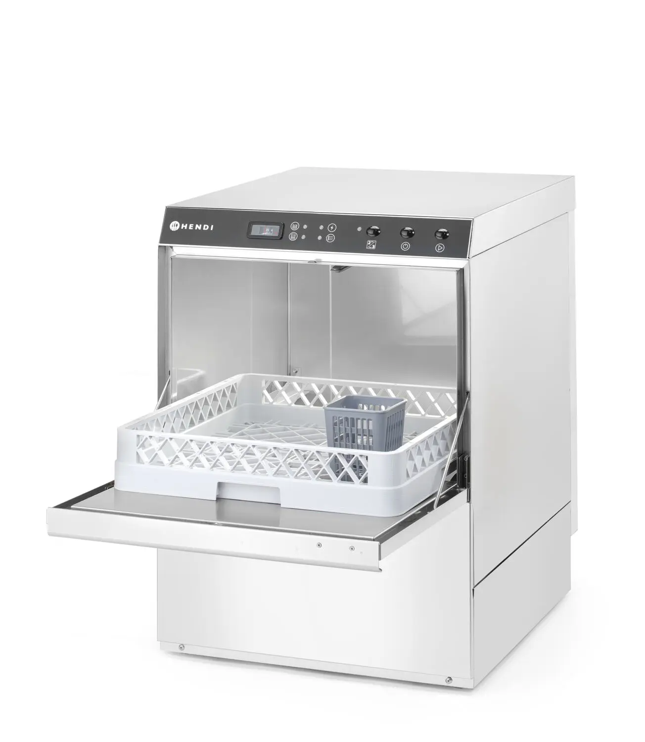 Zmywarka podblatowa do naczyń 500x500 mm, 30 Koszy/h, Hendi 237366, z dozownikiem nabłyszczacza, 4,9 kW, 400 V, 605x565x(h)830 mm