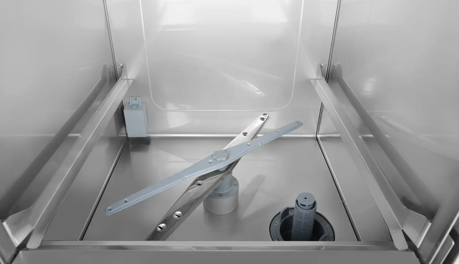 Dzięki niskim kosztom eksploatacji (zużycie wody tylko 2,4–2,6 l na cykl) oraz wydajności do 30 koszy na godzinę urządzenie doskonale sprawdzi się w restauracjach, barach, hotelach i punktach zbiorowego żywienia. Dostępne są 2 cykle mycia: 120 s oraz 180 s. Temperatura mycia wynosi 50–60°C, natomiast temperatura płukania 82–85°C, co gwarantuje wysoki poziom higieny.