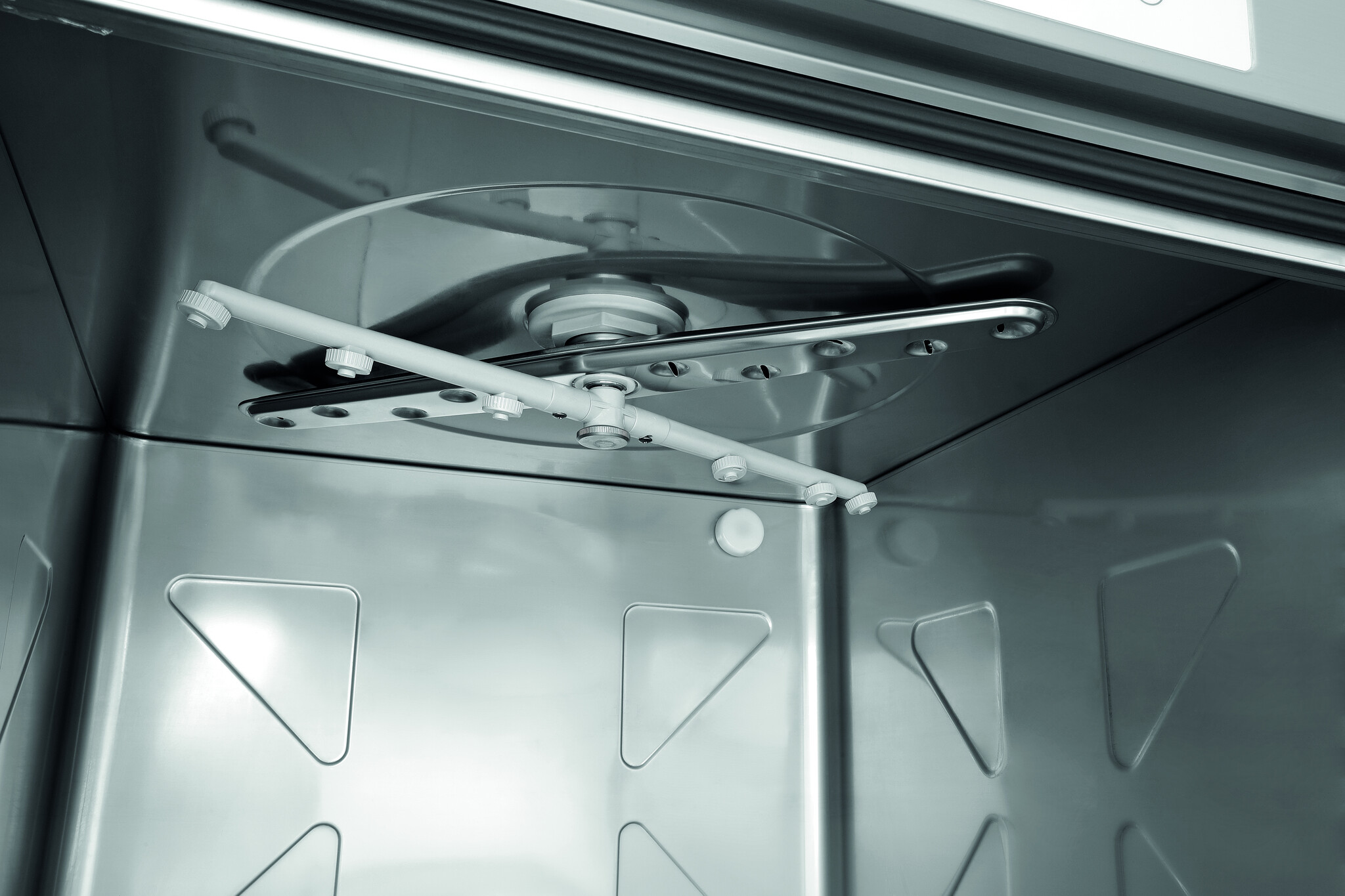 Wszechstronna zmywarka nadaje się optymalnie do szklanej i naczyń z wymiarem kosza 500x500 mm. Ze względu na przestronne wnętrze zmieszczą się również blachy do pieczenia, tace, pojemniki na mięso do 600x400 mm itd.Podmiot odpowiedzialny (GPSR):